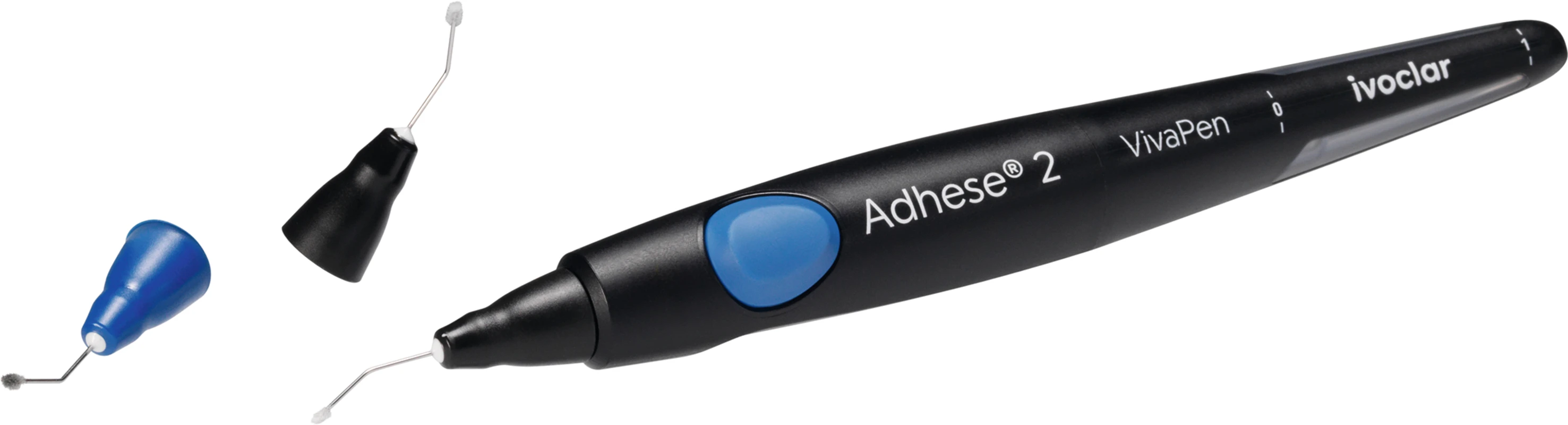 Adhese® 2 ist ein Universal-Adhäsiv mit licht- und dualhärtenden Eigenschaften für direkte und indirekte Versorgungen. Die innovative blaue DC-Kanüle[1] ermöglicht dabei erstmals die Dualhärtung direkt aus dem einzigartigen VivaPen® und erweitert so gezielt den klinischen Einsatzbereich, insbesondere bei lichtlimitiert en Situationen[2].