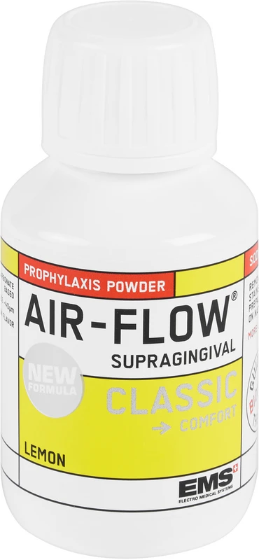 Die Evolution des Natriumbicarbonatpulvers AIRFLOW® CLASSIC Pulver: COMFORT. Die Korngröße wurde für einen höheren Patientenkomfort um nahezu 40 % von 65 µm auf 40 µm verringert. Das Pulver hat einen angenehmen Geschmack und hinterlässt ein angenehmes Mundgefühl und ist genauso effektiv in der Entfernung von Biofilm, starken Verfärbungen sowie jungem Zahnstein. Durch die verringerte Korngröße und die verschiedenen Aromen ist die Prophylaxe für Ihre Patienten deutlich angenehmer.