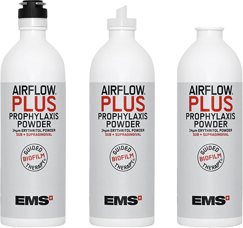 Das AIRFLOW® PLUS Pulver ist das erste High-Tech-Pulver zur minimalinvasiven Entfernung von Biofilm und jungem Zahnstein von allen Oberflächenarten wie Zahnschmelz, Dentin, Weichgeweben, Zunge und Gaumen, Milchzähnen, kieferorthopädischen Apparaturen, Implantatoberflächen und Restaurationen. Das auf Erythritol basierende Pulver ist ein echter Alleskönner und kann sowohl für die supra- als auch die subgingivalen Indikationen verwendet werden. ERYTHRITOL - DAS GROSSE PLUS IN DER HEUTIGEN PROPHYLAXE Mit einer Partikelgröße von nur 14μm stellt das AIRFLOW® PLUS Pulver das feinkörnigste Partikel in der Welt der Zahnheilkunde dar. Den Vorteil dieses einzigartigen Pulvers bietet ein selektiver, gering abrasiver Pulverstrahl und somit die Fähigkeit, den Biofilm wirksam zu entfernen, ohne dabei das Weich-und Hartgewebe zu verletzten oder zu reizen. Dank seinem sanften Strahl und dem süßen Geschmack ist das PLUS Pulver nicht nur für Kinder, Patienten mit kieferorthopädischen Apparaturen und Recall-Patienten, sondern auch für Patienten in der primären und sekundären Prävention und der unterstützenden Parodontaltherapie (UPT) geeignet. Die Kombination aus diesen einzigartigen Eigenschaften garantiert eine wirklich komfortable und angenehme Erfahrung sowohl für Patienten als auch für Ärzte. Damit ist das AIRFLOW® PLUS Pulver die intelligenteste Lösung für Sicherheit und Effizienz in der professionellen Zahnreinigung.