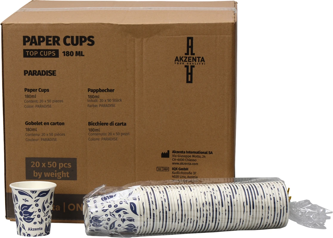 Produktinformationen "Akzenta ONE Pappbecher Karton 20 x 50 Stück paradise, 180 ml"