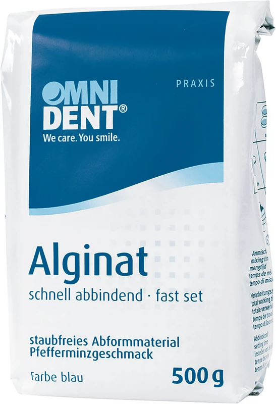 Für präzise Abformungen mit hohem Anwendungskomfort: Das schnellabbindende Alginat in Blau von OMNIDENT überzeugt durch seine cremige Konsistenz, staubfreie Verarbeitung und seinem angenehmen Pfefferminzgeschmack. Ideal für die effiziente Abformungen im Praxisalltag.
