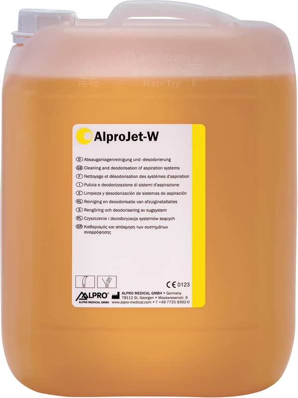 AlproJet-W wird 1x wöchentlich zur intensiven Reinigung und Pflege der Absauganlage eingesetzt. Die Kombination mit einem täglichen Reiniger wie AlproJet-D oder AlproJet-DD sorgt für eine umfassende Reinigung und Desinfektion des gesamten Absaugsystems.