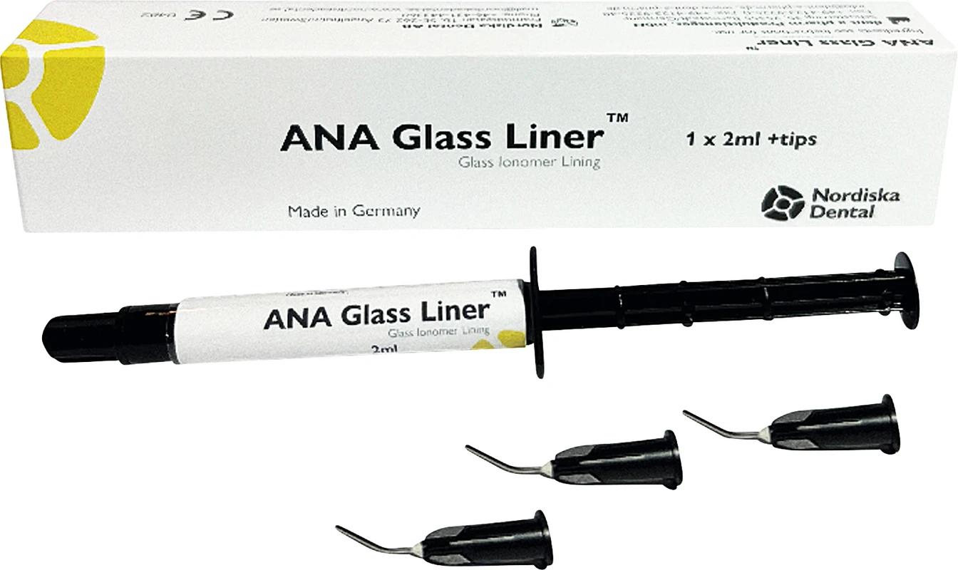 ANA Glass Liner™ ist ein LC-, fließfähiges und röntgendichtes Glasionomer-Auskleidungsmaterial. Der Liner kann unter jedem Füllmaterial verwendet werden und ermöglicht eine kontrollierte Ausdehnung, um die Aushärtungskontraktion von Verbundwerkstoffen auszugleichen. Es kann auch für Keramik- und Porzellanfüllungen, sowie für kleinere oder temporäre Zwecke verwendet werden. ANA Glass Liner™ enthält Fluoride, die den Zahnschmelz remineralisieren. Angaben: