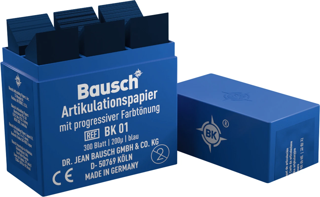 Schnelle Kontrolle und präzise Druckverteilung: Das Bausch Artikulationspapier mit progressiver Farbtönung ermöglicht die differenzierte Darstellung von Kaudruckverhältnissen. Je nach Druckintensität erfolgt eine farbschattierte Markierung – von hell bei leichtem bis dunkel bei starkem Aufbiss. Damit lassen sich Kaudruckinterferenzen zuverlässig erkennen und gezielt beseitigen.
