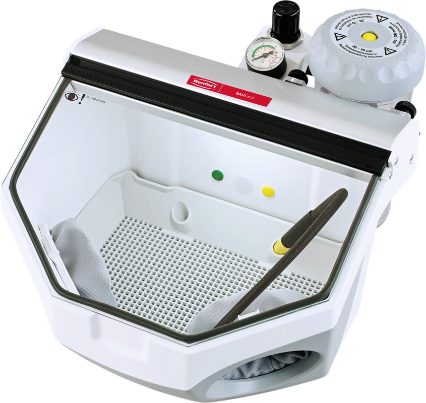 - Perfekte Gleichmäßigkeit in Strahlmittelfluss, Strahlkraft und Strahlbild. So erreichen Sie immer gleichmäßige, reproduzierbare Oberflächenkonditionierung für perfekte Verbundeigenschaften. Ohne Spannungen und Risse in der Keramik