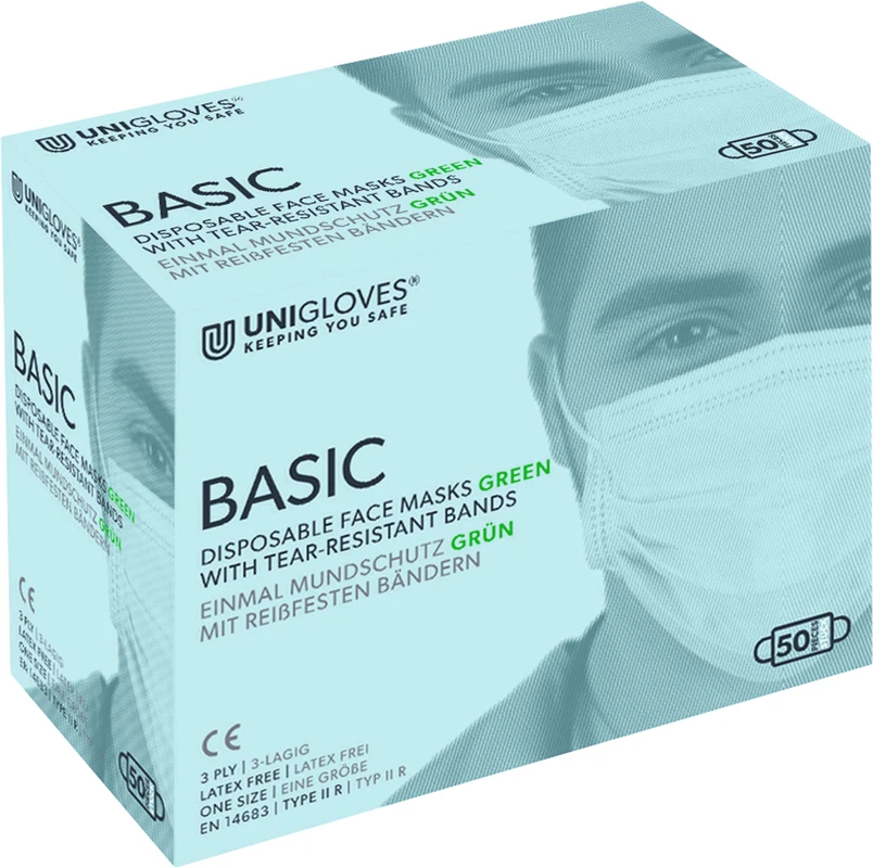 Produktinformationen "BASIC OP-Mundschutz Spenderbox 50 Stück grün"