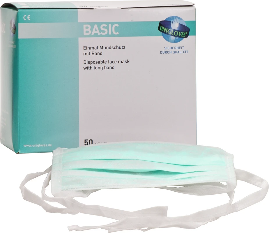 BASIC OP-Mundschutz mit Bändern – grün, 3-lagig, 50 Stück