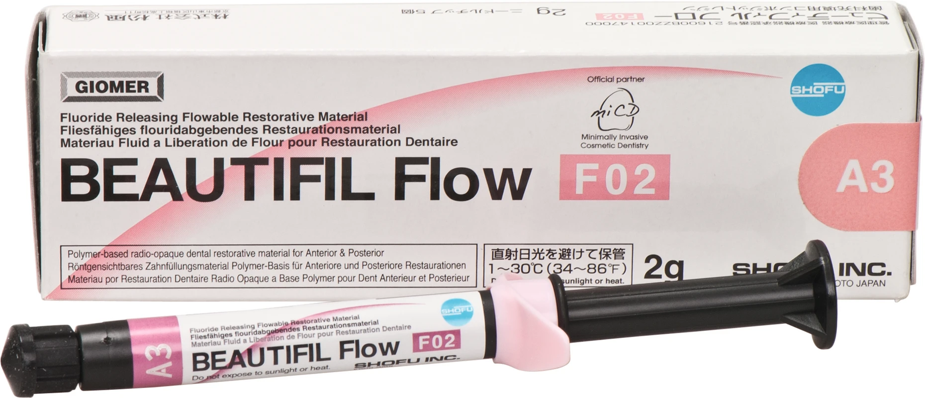 Beautifil Flow - Die fließfähige Ergänzung zu Beautifil II in einer leicht- und einer zähfließenden Variante. Mit diesen zwei Viskositätsstufen wird der Indikationsspielraum in idealer Weise erweitert. Beautifil F02 ist zähfließend und Beautifil F10 ist leichtfließend eingestellt.