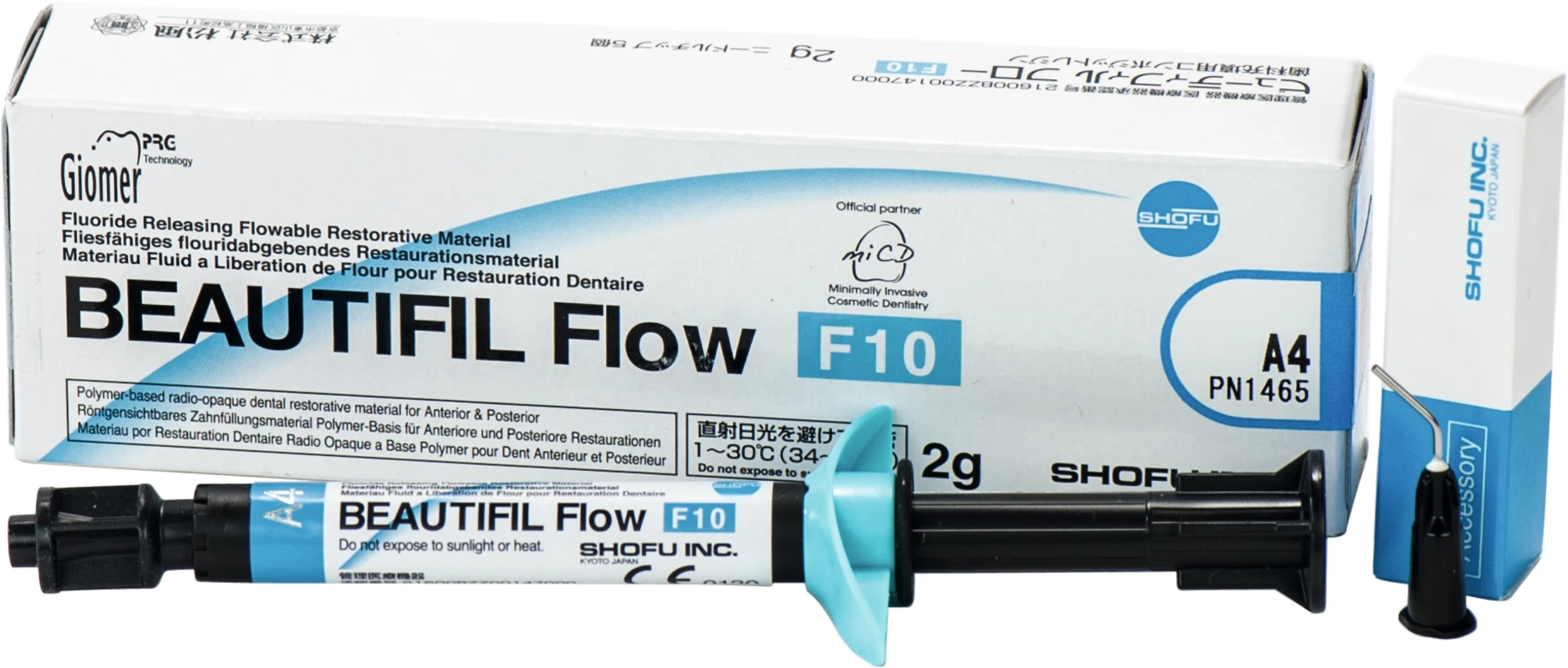 Beautifil Flow - Die fließfähige Ergänzung zu Beautifil II in einer leicht- und einer zähfließenden Variante. Mit diesen zwei Viskositätsstufen wird der Indikationsspielraum in idealer Weise erweitert. Beautifil F02 ist zähfließend und Beautifil F10 ist leichtfließend eingestellt.
