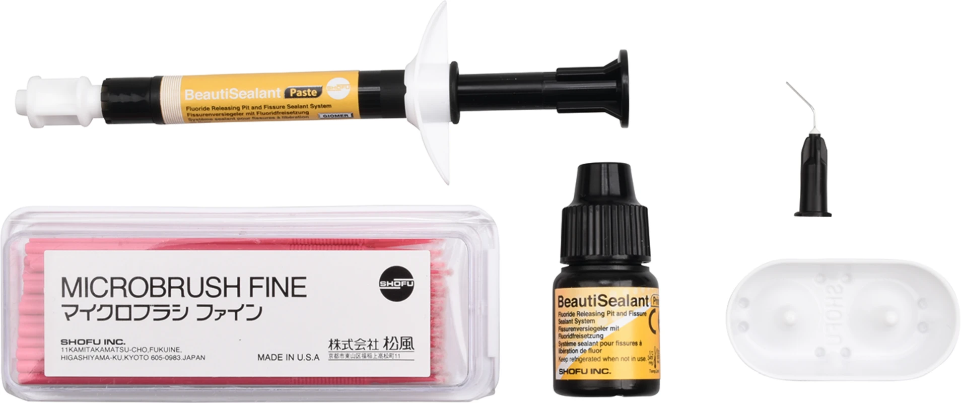 Produktinformationen "BeautiSealant Kit 1,2 g Paste, 3 ml Primer, 15 Kanülen, 50 Microbrush fine pink, 25 V-Dish"