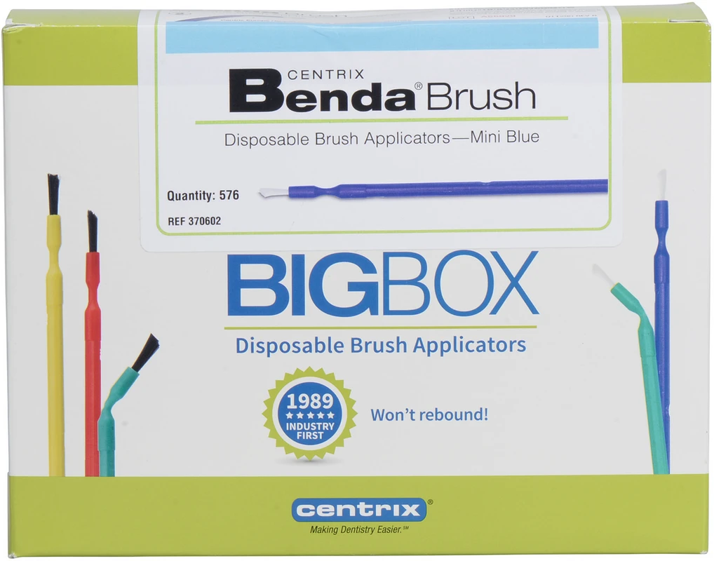 Benda® Brush Applikatoren sind die originalen biegbaren Brush Applikatoren. Normalerweise verwendet mit Aufhellungs-, Ätz-, Bondingmitteln, Versieglern, Desensibilisierern, Adhäsiven und Kompositen. Zubehör für Onyx Ätzgel.