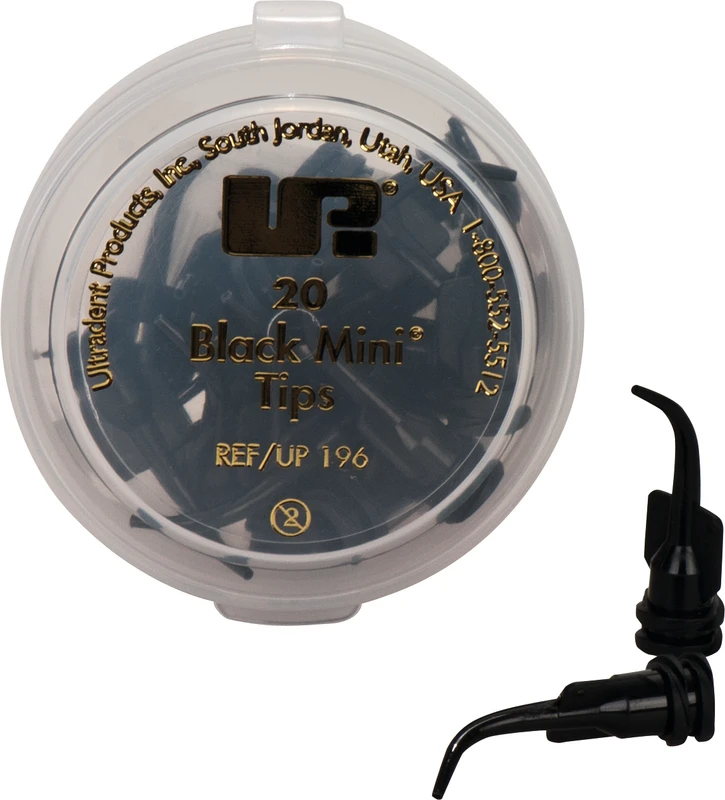Schwarzer Kunststoff-Ansatz (Ø 1 mm), gebogen, zur Applikation von mäßig viskösen Materialien.Zu verwenden mit: Ultra-Blend plus, Ultradent LC Block-Out Resin, PermaFlo, UltraTemp, Opalescence Boost, Ultradent Diamond Polish Mint, OpalDam, Opalescence Endo, OraSeal Caulking und OraSeal Putty. Inhalt Applikationskanülen