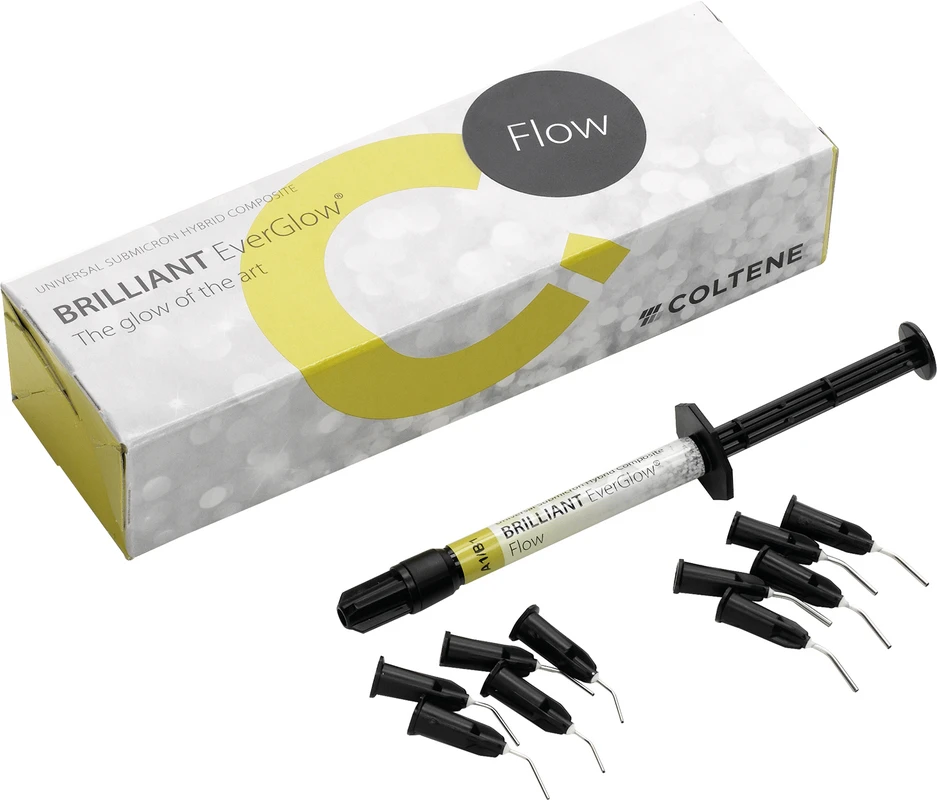 BRILLIANT EverGlow™ ist nun zusätzlich in einer fließfähigen Variante erhältlich. Das niederviskose Füllungsmaterial verbindet komfortables Applizieren mit gleichzeitig hoher Standfestigkeit. Ideal zum Auffüllen schwer erreichbarer Bereiche sowie zur Fissurenversiegelung. Die Flow-Variante kann material- und zeitsparend direkt aus der Spritze auf die gebondete Oberfläche aufgetragen werden. Bis zur Polymerisation lässt sich das unter Druck fließfähige Komposit in aller Ruhe an die gewünschte Position bringen.