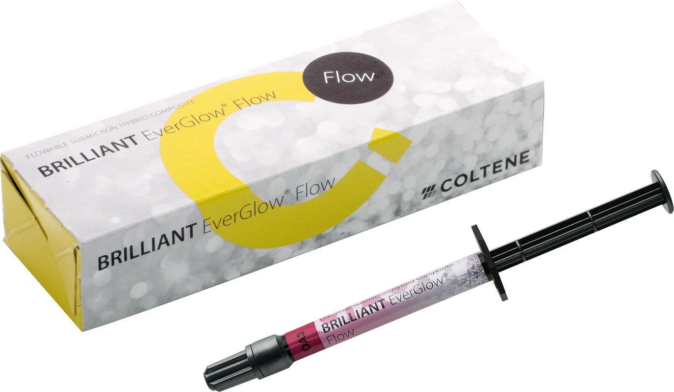 BRILLIANT EverGlow™ ist nun zusätzlich in einer fließfähigen Variante erhältlich. Das niederviskose Füllungsmaterial verbindet komfortables Applizieren mit gleichzeitig hoher Standfestigkeit. Ideal zum Auffüllen schwer erreichbarer Bereiche sowie zur Fissurenversiegelung. Die Flow-Variante kann material- und zeitsparend direkt aus der Spritze auf die gebondete Oberfläche aufgetragen werden. Bis zur Polymerisation lässt sich das unter Druck fließfähige Komposit in aller Ruhe an die gewünschte Position bringen.