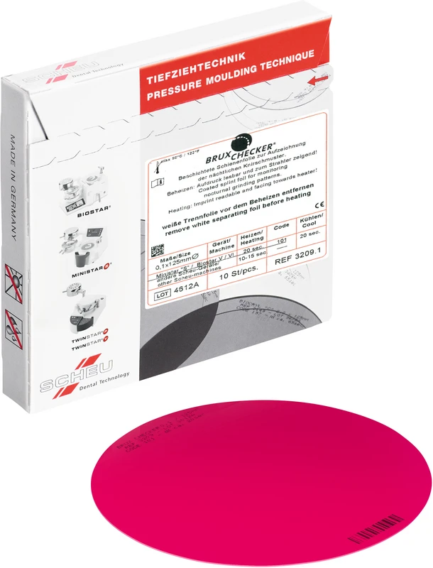 Nach Professor Sato. Einseitig farblich beschichtete Analyse- und Therapieplanungsfolie mit 0,1 mm Ausgangsstärke. Als Indikator für die Diagnose und Therapieplanung in der CMD-Therapie, aber auch zur Prüfung und zum Einschleifen der Okklusion bei allen prothetischen Versorgungen geeignet.