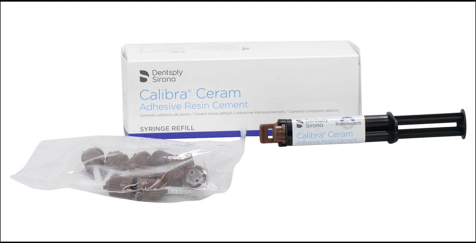 Der Calibra® Ceram adhäsive Kompositzement ist ein mit sichtbarem Licht härtender, dualhärtender oder selbsthärtender hochfester Kompositzement mit Fluorid. Der Calibra® Ceram Zement ist für die Verwendung nach dem Auftragen eines kompatiblen Dentin-/Schmelzadhäsivs konzipiert. Auch wenn er mit zahlreichen indirekten restaurativen Materialien kompatibel ist, gibt es besondere Anweisungen für die Verwendung mit lichtdurchlässigen Restaurationen. Inhalt 45 g Automix Spritze10 Mischkanülen