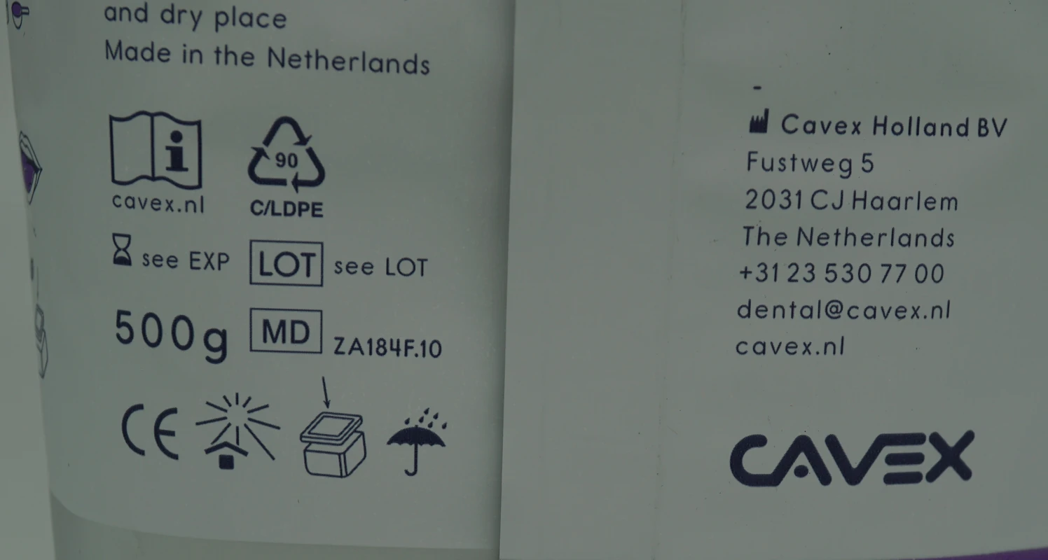 Farbumschlagalginat mit 9 Tagen Dimensionsstabilität. Das Cavex Alginat der nächsten Generation mit hervorragenden Eigenschaften. Ermöglicht die visuelle Verfolgung des Misch- und Aushärtungsprozesses. Hohe Druckfestigkeit - Ideal für die KFO-Praxis Besondere Reißfestigkeit und Rückstellkraft Detailwiedergabe 25 μm Innovatives Abbindeverhalten mit zwei deutlich sichtbaren Farbumschlägen Optimale Gipskompatibilität Patientenfreundliche Abbindezeit im Mund von nur 1 Minute durch Snapset Inhalt Alginat