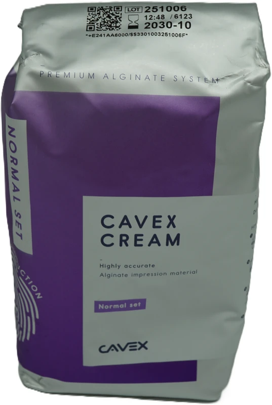 Die sensationelle neue Formel sprengt alle Dimensionen bisheriger Alginate. Der jüngste Spross der Cavex Alginat-Familie ist das Cavex Cream Alginat. Dieses moderne Alginat lässt sich sehr einfach zu einer großartigen, glatten und cremigen Masse mischen. Dank der unvergleichlichen Detailgenauigkeit von 5 μm in Kombination mit den „serienmäßigen“ Cavex Alginat-Eigenschaften, wie z.B. hohe Reißfestigkeit, Normalhärtung und 5 Jahre Haltbarkeit, beginnt sich Cavex Cream Alginat der Silikonqualität ernsthaft zu nähern. Natürlich ist dieses moderne Alginat auch scannbar. Leicht anmischbar zu einer glatten cremigen Masse Unvergleichliche Detailgenauigkeit von nur 5 μm !! Besonders hohe Reißfestigkeit Tage dimensionsstabil Staubfrei Scannbar Fast Variante: Schnell abbindend 1:00 min Inhalt Alginat