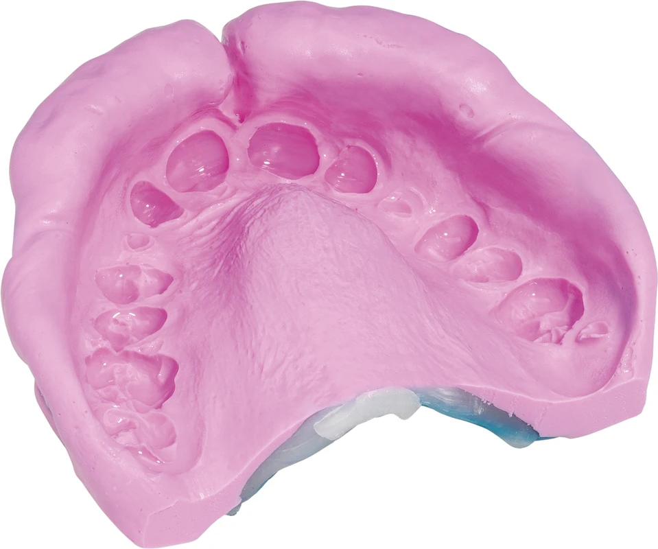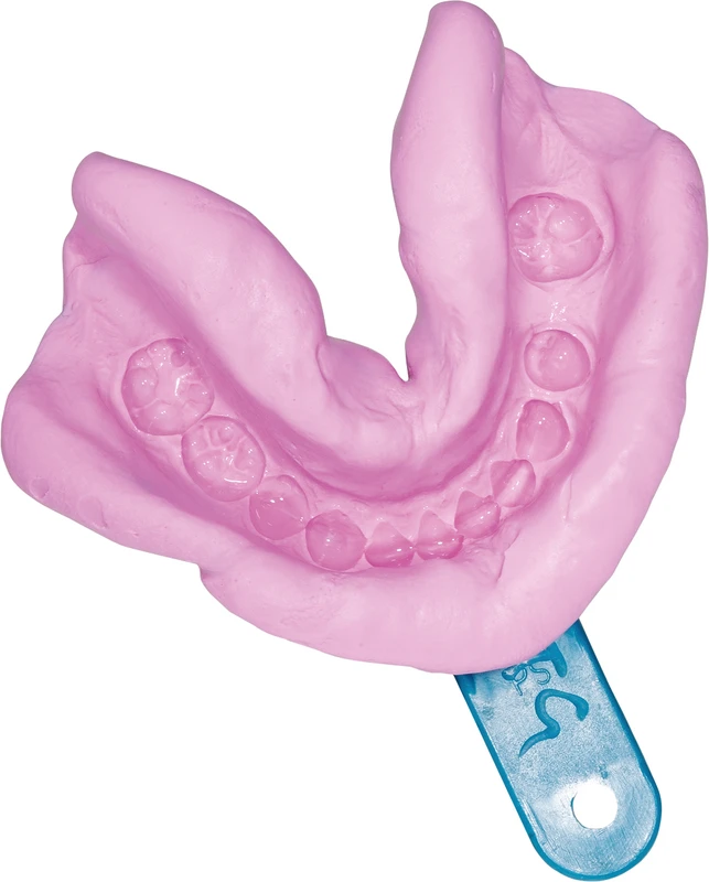 - Die feste Konsistenz erleichtert die Anfertigung einer Vollabformung mit hoher Mucobuccalfalte