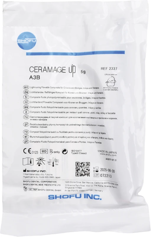 Das Beste aus zwei restaurativen Welten - Das fließfähige Komposit-Verblendsystem CERAMAGE UP vereint alle positiven Eigenschaften von Komposit und Keramik in einem neuartigen Hochleistungswerkstoff. Das lichthärtende Komposit ist hochstabil, hochelastisch und hochästhetisch – für ein Maximum an naturkonformer Langlebigkeit und Ästhetik!