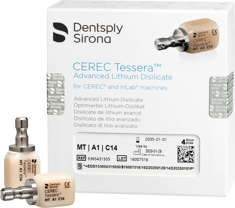 CEREC Tessera™ Advanced Lithium Disilicate eine neue Generation von CAD/CAM Blöcken einzuführen. CEREC Tessera™ ist ein Vollkeramik-System zur Herstellung von Kronen im Frontund Seitenzahnbereich sowie Inlays, Onlays und Veneers. 700 MPa biaxiale Festigkeit durch Lithium-Disilikat und Virgilit, eingebettet in einer zirkonoxidverstärkten Glasmatrix – bis zu 32% fester als der Wettbewerb Hervorragende Transluzenz-, Fluoreszenz und Opaleszenz-Eigenschaften – wird selbst hohen Ansprüchen an ästhetischen Restaurationen im direkt sichtbaren Frontzahnbereich gerecht Bis zu 44% weniger Verarbeitungszeit durch kurzen Glasurbrand von nur 4:30 min im CEREC SpeedFire Inhalt Blöcke Produktvideos: