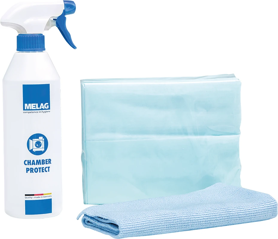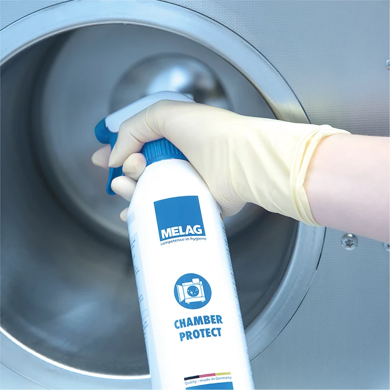 Zuverlässige Reinigung und langfristiger Schutz, der Ihren Autoklaven strahlen lässt: Mit dem neuen MELAG Kesselreinigungsset entfernen Sie selbst für das Auge nicht sichtbare Verschmutzungen und verhindern somit hartnäckige Verfärbungen und Ablagerungen. Profitieren Sie von Chamber Protect bei der wöchentlichen Reinigung des Kessels und der Tabletts.