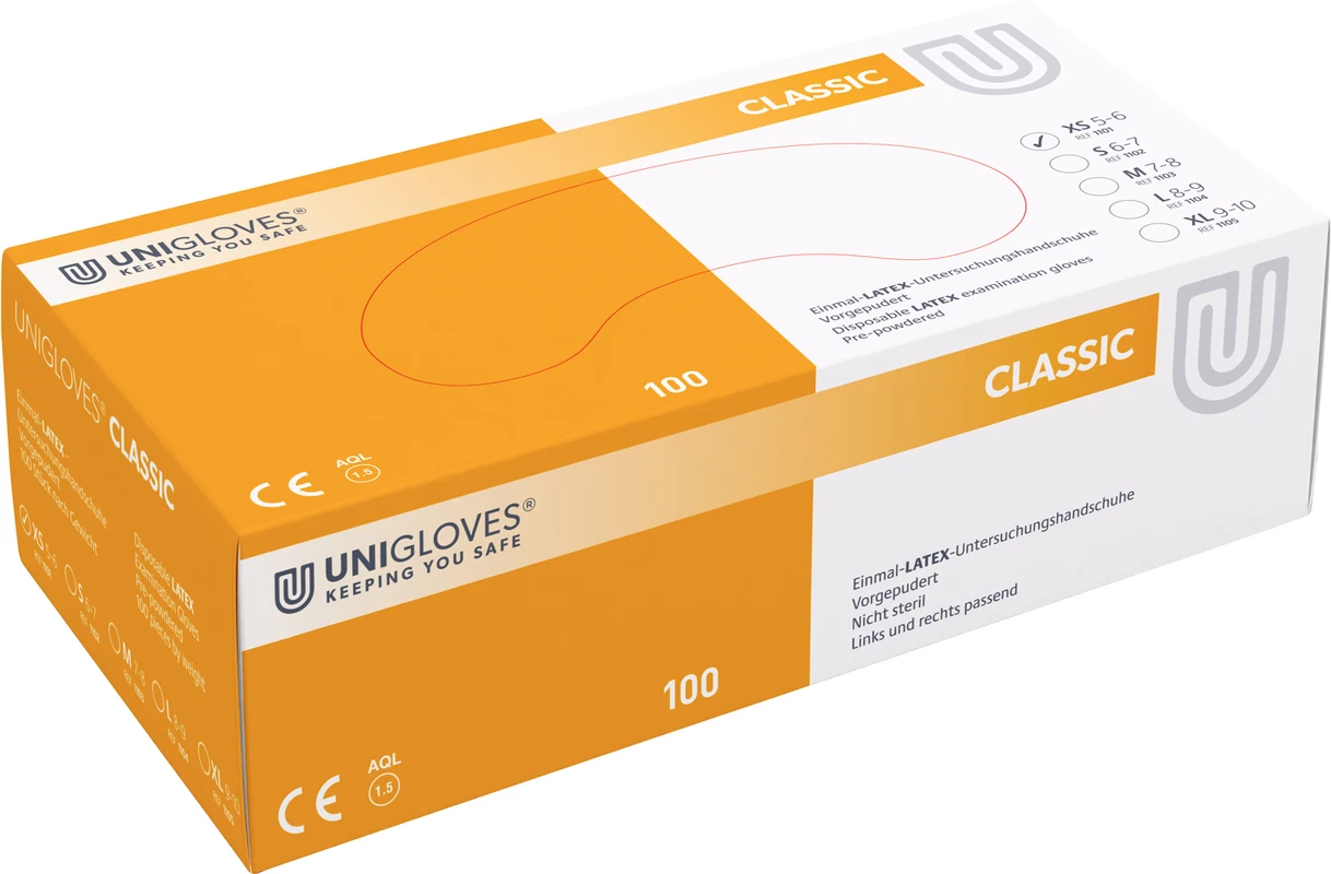 CLASSIC® Latexhandschuhe – gepudert, Größe XS, 100 Stück