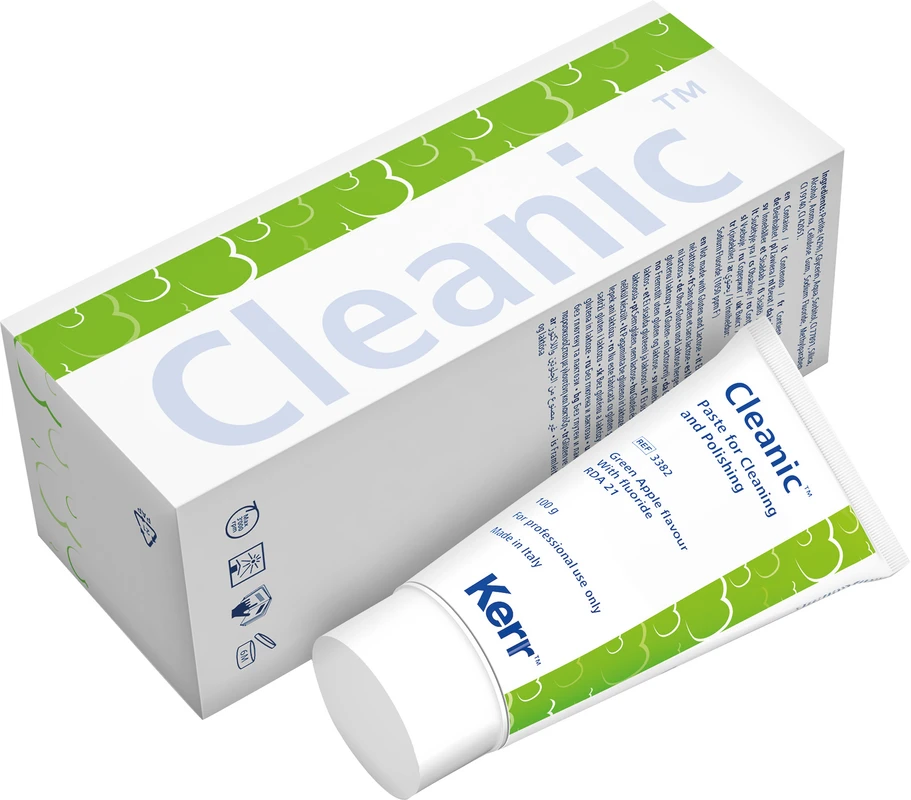 Cleanic™ Prophy-Pasten Ein-Schritt-Prophypaste. Cleanic™ ist eine Ein-Schritt-Prophy-Paste, die Ihrem Patienten hervorragende Reinigungs- und Politurresultate bei geringer Abrasion der Zähne in einem Schritt garantiert, und zwar aufgrund der klinisch bewährten integrierten Abrasionsvariabilität von natürlichen Perlit-Partikeln.Cleanic™ ist in verschiedenen Geschmacksrichtungen, mit oder ohne Fluorid, erhältlich. RDA 21. Inhalt Prophylaxepaste
