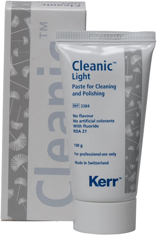 Cleanic™ Prophy-Pasten Ein-Schritt-Prophypaste. Cleanic™ ist eine Ein-Schritt-Prophy-Paste, die Ihrem Patienten hervorragende Reinigungs- und Politurresultate bei geringer Abrasion der Zähne in einem Schritt garantiert, und zwar aufgrund der klinisch bewährten integrierten Abrasionsvariabilität von natürlichen Perlit-Partikeln.Cleanic™ ist in verschiedenen Geschmacksrichtungen, mit oder ohne Fluorid, erhältlich. RDA 21. Inhalt Prophylaxepaste