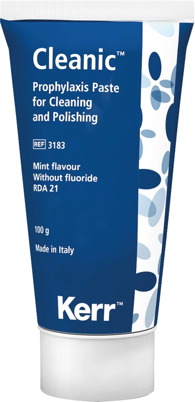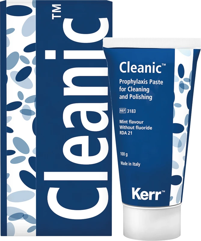 Cleanic™ Prophy-Pasten Ein-Schritt-Prophypaste. Cleanic™ ist eine Ein-Schritt-Prophy-Paste, die Ihrem Patienten hervorragende Reinigungs- und Politurresultate bei geringer Abrasion der Zähne in einem Schritt garantiert, und zwar aufgrund der klinisch bewährten integrierten Abrasionsvariabilität von natürlichen Perlit-Partikeln.Cleanic™ ist in verschiedenen Geschmacksrichtungen, mit oder ohne Fluorid, erhältlich. RDA 21. Inhalt Prophylaxepaste