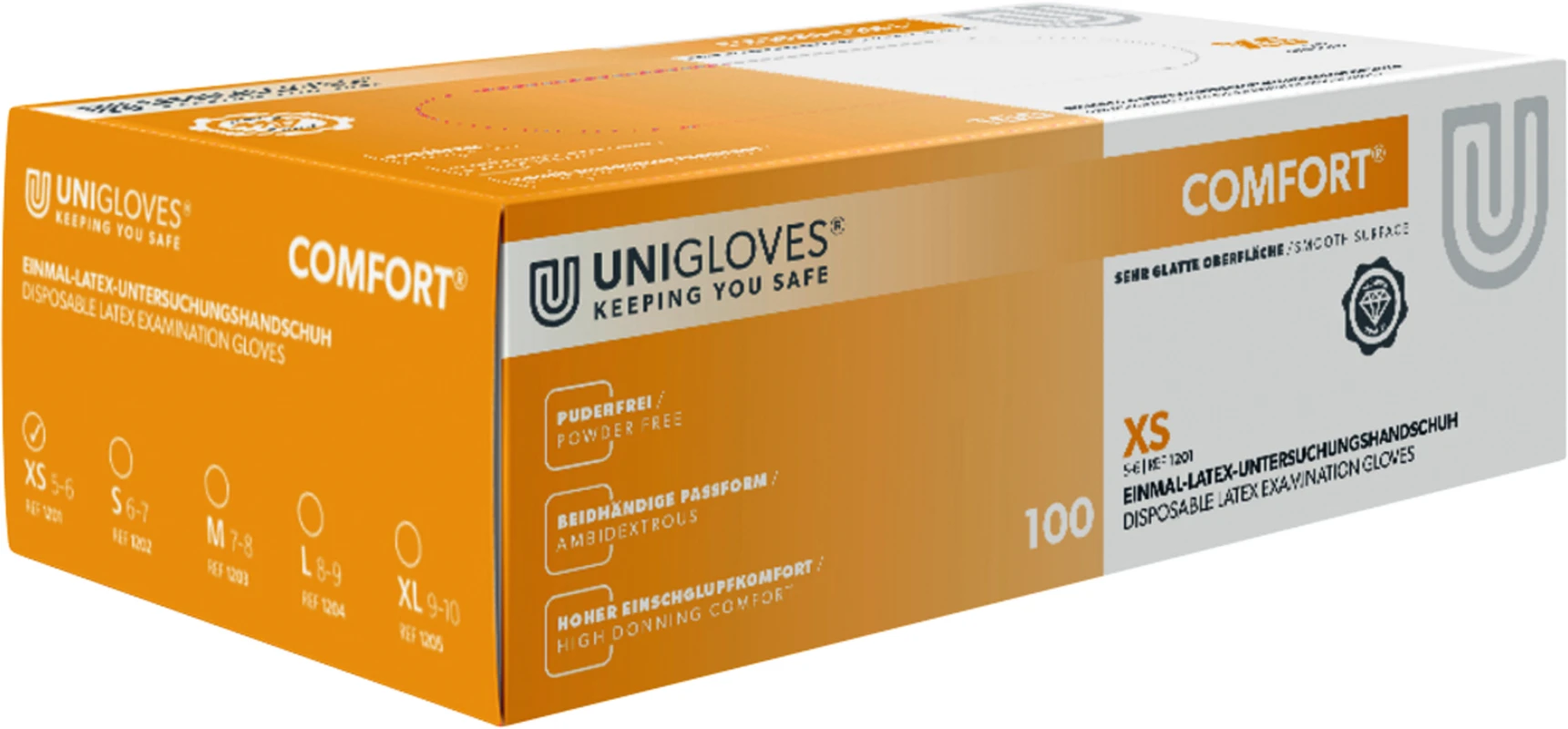 Zuverlässiger Schutz und hoher Komfort: Die COMFORT® Latexhandschuhe bieten ein angenehmes Tragegefühl in Kombination mit verlässlicher Schutzfunktion. Dank mikrogerauter Handflächen und Rollrand gewährleisten sie hohe Griffigkeit und einen festen Halt – ideal für den täglichen Einsatz in Praxis oder Labor.