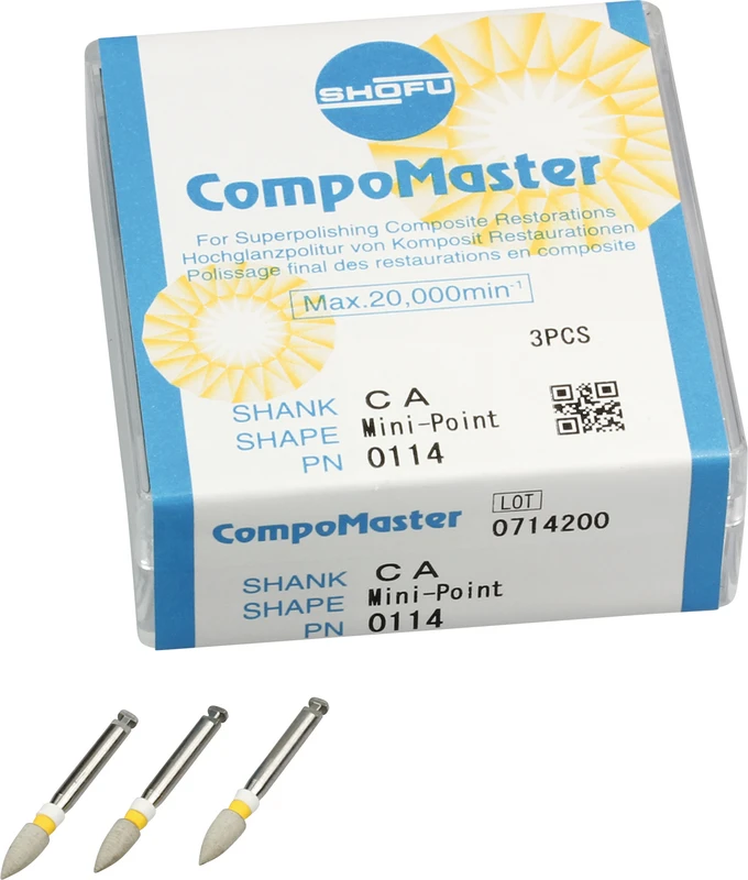 Die Silikonpolierer sind mit einer ausgewogenen Mischung reiner Diamantpartikeln imprägniert, haben eine lange Standzeit und eignen sich für die rasche Ausarbeitung und Politur von Komposit-Restaurationen sowie die Erzielung einer äußerst homogenen und glatten Oberfläche. Die unterschiedlichen Körnungen der groben CompoMaster Coarse in Kombination mit den feineren CompoMaster Polierern (mit gelber und weißer Schaftmarkierung) bilden ein effizientes Konzept für eine homogene Oberflächenbearbeitung. Die CompoMaster Coarse Polierer wurden entwickelt, um Kompositoberflächen zu konturieren und in einem Arbeitsgang vorzuglätten. Die so vorbereiteten Oberflächen werden dann mit den CompoMaster Instrumenten poliert.