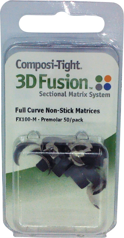 3DXR™ Ergänzung zum bewährten Composi-Tight 3D Teilmatrizensystem. Der neue Ring bietet höchste Retention bei sicherer Handhabung und wurde speziell für den Gebrauch an kurzen oder schiefen Zähnen und auch zwischen Eckzahn und erstem Prämolaren entwickelt. Die Ringspitzen greifen unterhalb des Kontaktbereichs und verhindern so ein Abspringen des Rings. 3D600, 3D500 Weiche Silikonenden passen sich optimal an die Zähne an und verhindern bukkale und linguale Kompositüberstände. Harter, lichtdurchlässiger Kern separiert die Zähne interproximal. Extra Aussparung für den Keil. 3D400Bestens geeignet für den Eckzahn distal. Sitzt perfekt an kurzen und schiefstehenden Zähnen. FX600Der neue 3D Fusion™ Ring für weite Kavitäten. Besonders gut für ausgedehnte, große Kavitäten. Hält selbst bei fehlenden Höckern. Die breiten Silikonfüßchen verhindern das Eindrücken der Matrize in die Kavität. FX500Der altbewährte Soft Face 3D™ Ring jetzt mit retentiven Spitzen. Extra Retentionsspitzen verhindern ein Abrutschen der Ringe. Verbesserte Ringform erleichtert das Öffnen und Platzieren der Ringe. Hält auch an großen Molaren. FX400Der beliebte 3DXR™ Ring ist jetzt noch leichter zu öffnen. Verbesserte Hufeisenform erleichtert das Öffnen und Platzieren der Ringe. Besonders geeignet bei kurzen und schiefstehenden Zähnen. Hält auch über einer Kofferdammklammer oder am Eckzahn distal. Inhalt 2 x 3D Fusion Ringe