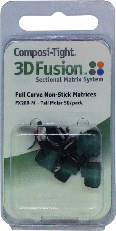 3DXR™ Ergänzung zum bewährten Composi-Tight 3D Teilmatrizensystem. Der neue Ring bietet höchste Retention bei sicherer Handhabung und wurde speziell für den Gebrauch an kurzen oder schiefen Zähnen und auch zwischen Eckzahn und erstem Prämolaren entwickelt. Die Ringspitzen greifen unterhalb des Kontaktbereichs und verhindern so ein Abspringen des Rings. 3D600, 3D500 Weiche Silikonenden passen sich optimal an die Zähne an und verhindern bukkale und linguale Kompositüberstände. Harter, lichtdurchlässiger Kern separiert die Zähne interproximal. Extra Aussparung für den Keil. 3D400Bestens geeignet für den Eckzahn distal. Sitzt perfekt an kurzen und schiefstehenden Zähnen. FX600Der neue 3D Fusion™ Ring für weite Kavitäten. Besonders gut für ausgedehnte, große Kavitäten. Hält selbst bei fehlenden Höckern. Die breiten Silikonfüßchen verhindern das Eindrücken der Matrize in die Kavität. FX500Der altbewährte Soft Face 3D™ Ring jetzt mit retentiven Spitzen. Extra Retentionsspitzen verhindern ein Abrutschen der Ringe. Verbesserte Ringform erleichtert das Öffnen und Platzieren der Ringe. Hält auch an großen Molaren. FX400Der beliebte 3DXR™ Ring ist jetzt noch leichter zu öffnen. Verbesserte Hufeisenform erleichtert das Öffnen und Platzieren der Ringe. Besonders geeignet bei kurzen und schiefstehenden Zähnen. Hält auch über einer Kofferdammklammer oder am Eckzahn distal. Inhalt 2 x 3D Fusion Ringe