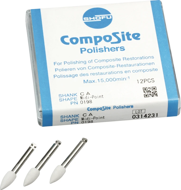 Ohne den Schmelz zu beschädigen, dienen die CompoSite Instrumente der Politur und Hochglanzpolitur von Komposit-Restaurationen. CompoSite Polierer werden zum Ausarbeiten und zur Vorpolitur verwendet, CompoSite Fine (mit weißer Schaftmarkierung) zur Politur. Die flexiblen und sich den Oberflächen anpassenden Kelche und Scheiben polieren sicher subgingivale und interproximale Oberflächen. Birne und Midispitze eignen sich besonders zum Polieren okklusaler und lingualer Oberflächen.Anwendungsbereich: