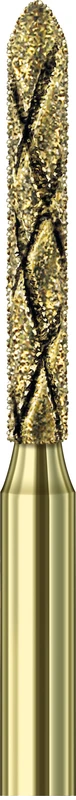 Die Oberfläche der COOL-DIAMANT-Schleifer ist durch asymmetrisch sich kreuzende Kanäle unterbrochen. Diese diamantierten Kanäle können zum einen eine erhöhte Menge Kühlflüssigkeit transportieren und unterbrechen zum anderen den Schleifvorgang bis zu 7 mal bei jeder Umdrehung des Schleifers. Beides fördert einen kühlen Schliff. Funktions- und formkongruente Instrumente in drei Körnungen für präzise aufeinander abgestimmte Präparationsschritte.