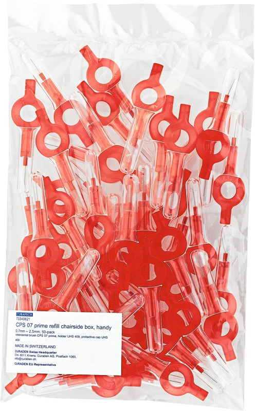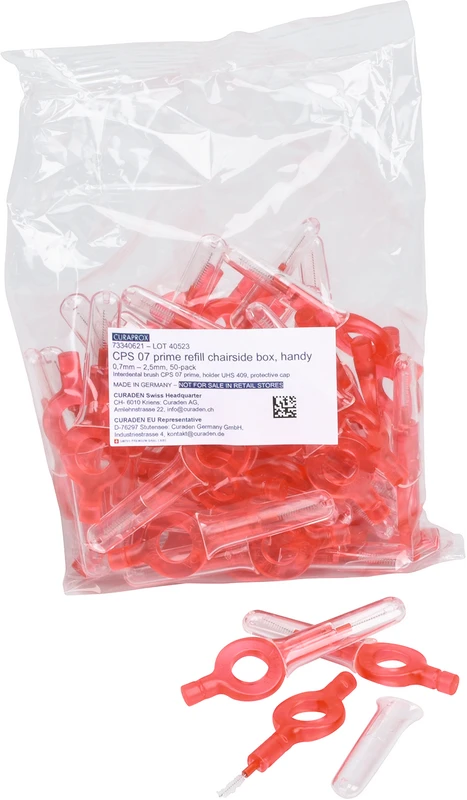 Produktinformationen "CURAPROX CPS prime handy Beutel 50 Stück 07 rot, Ø 2,5 mm, vormontiert"