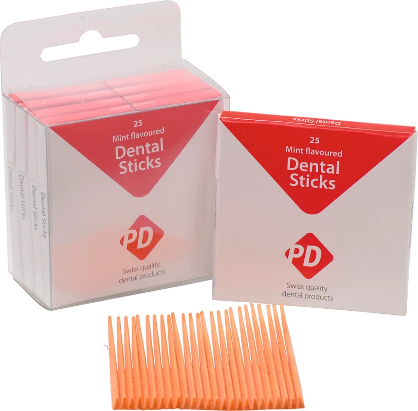 Interdental Holzstäbchen, mit dreieckigem Querschnitt für die Reinigung von Plaque und das massieren des Zahnfleisches. Mit Minzaroma für ein frischen Atem. 1 Umschlag enthält 1 Plättchen mit 25 einzelnen abbrechbaren Sticks.