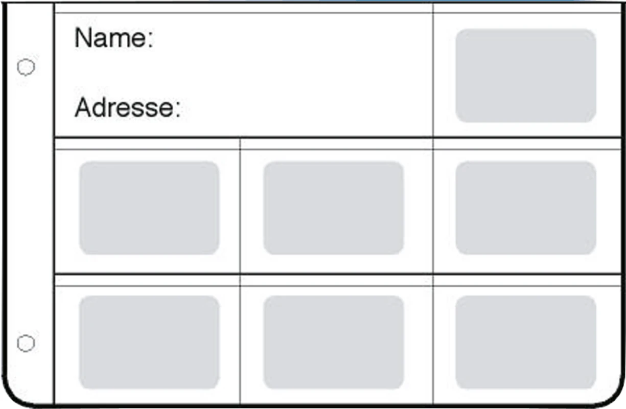Zum Abheften, mit Datenfeld und Lochung. DIN A6 quer.