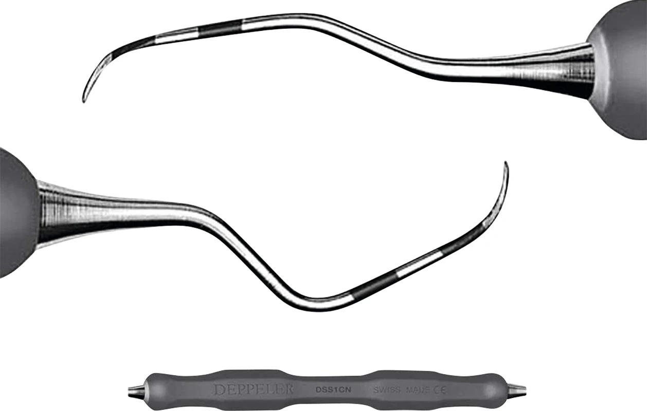 Produktinformationen "DEPPELER Smart Scaling Kürette Stück Prämolaren, Molaren, bukkal/palatinal, CN Griff, schwarz"