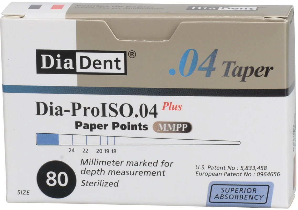 DiaDent® Dia-Pro Paper Points Packung 100 Stück Taper.04, ISO 080