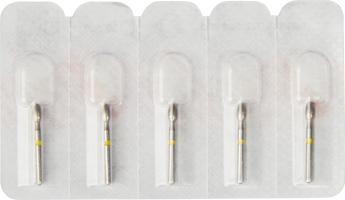 Produktinformationen "Diamanten 379 Packung 5 Stück gelb superfein, FG, Figur 277 Eiform, 4,5 mm, ISO 023"