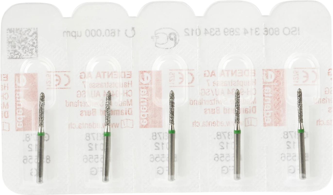 Produktinformationen "Diamanten 878 Packung 5 Stück grün grob, FG, Figur 289 Torpedo zylindrisch, 8 mm, ISO 012"