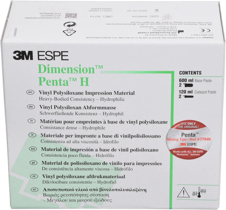 A-Silikon-Präzisionsabformmaterialien für die Doppelmischtechnik (feste und dünne Konsistenz) zum automatischen Anmischen und Dosieren im Pentamix™ System und im Garant™ Dispenser von 3M ESPE.