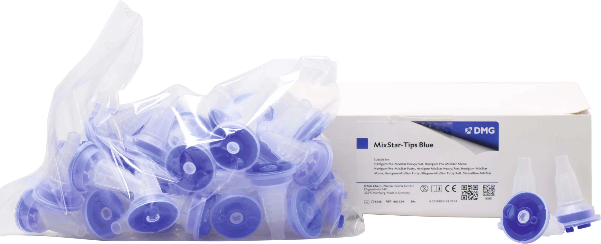 Honigum Pro Heavy Vorteilspackung 8 x 50 ml Doppelkartusche, 16 Automix-TipsProduktinformationen "DMG MixStar-Tips Packung 50 Stück blau"