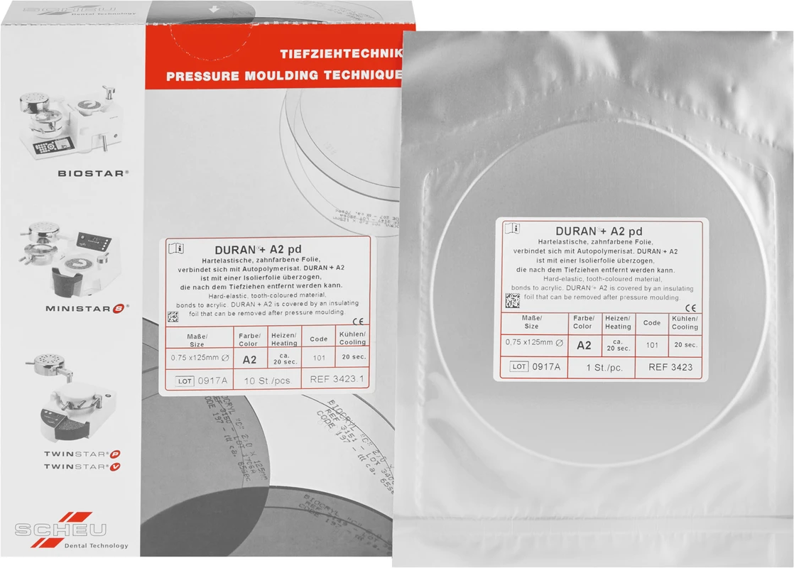 Neue Folie in bewährter DURAN®-Qualität jetzt in ästhetischer VITA A2-Farbe. Keine Vortrocknen notwendig, mit aufgebrachter Isolierfolie. Anwendung