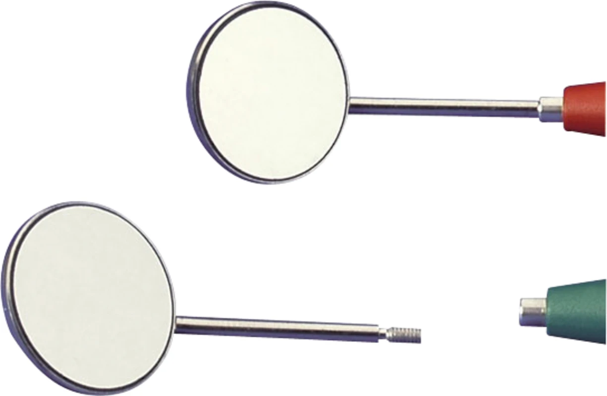 Rhodiumbeschichteter Frontspiegel. Rostfreie, hochwertige Qualität. Langlebig, verzerrungsfrei, autoklavierbar. Schmaler Slimline-Kopf.