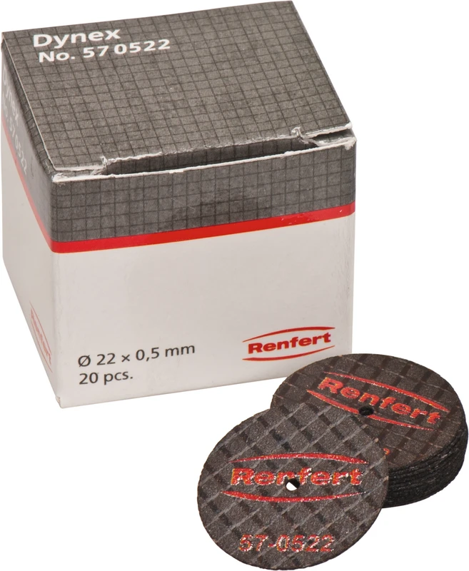 Mit den Dynex Trennscheiben von Renfert wird das Abtrennen und Verschleifen von Gusskanälen sowie das Separieren von Verblendungen jetzt zum Kinderspiel. Die doppelt faserverstärkten Trennscheiben sind nicht nur wesentlich effektiver in der Anwendung, sie sind auch wirtschaftlicher. Sowohl in der Schnittleistung als auch im Eigenverbrauch sind die in drei Größen erhältlichen Scheiben herkömmlichen Trennscheiben deutlich überlegen.