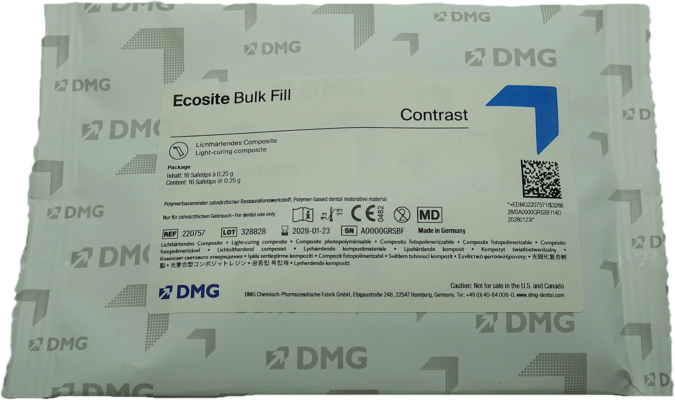 Extrem leicht zu verarbeiten und lange haltbar. Kurz gesagt: Füllungen könnten nicht unkomplizierter sein als mit dem neuen Ecosite Bulk Fill. Das stopfbare Composite ist in nur einer Schicht schnell applizierbar, die Durchhärtung erfolgt zuverlässig bis fünf Millimeter. Außerdem lässt sich das Material dank festerer Konsistenz hervorragend modellieren, präzise Kontaktpunktgestaltung inklusive. Das funktionelle Farbsystem mit zwei ästhetischen Allzweckfarben und einer Kontrastfarbe unterstützt das denkbar intuitive, einfache Arbeiten zusätzlich.