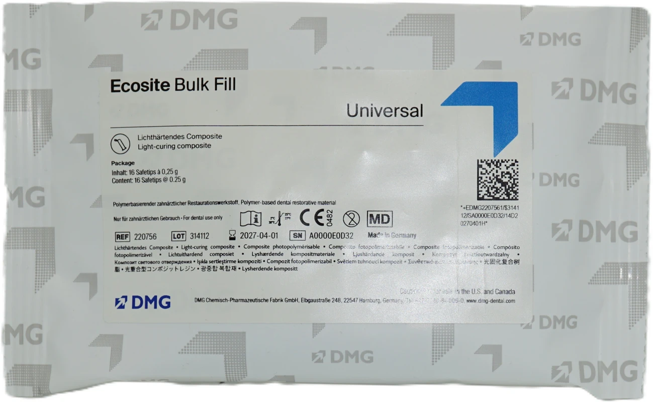 Extrem leicht zu verarbeiten und lange haltbar. Kurz gesagt: Füllungen könnten nicht unkomplizierter sein als mit dem neuen Ecosite Bulk Fill. Das stopfbare Composite ist in nur einer Schicht schnell applizierbar, die Durchhärtung erfolgt zuverlässig bis fünf Millimeter. Außerdem lässt sich das Material dank festerer Konsistenz hervorragend modellieren, präzise Kontaktpunktgestaltung inklusive. Das funktionelle Farbsystem mit zwei ästhetischen Allzweckfarben und einer Kontrastfarbe unterstützt das denkbar intuitive, einfache Arbeiten zusätzlich.